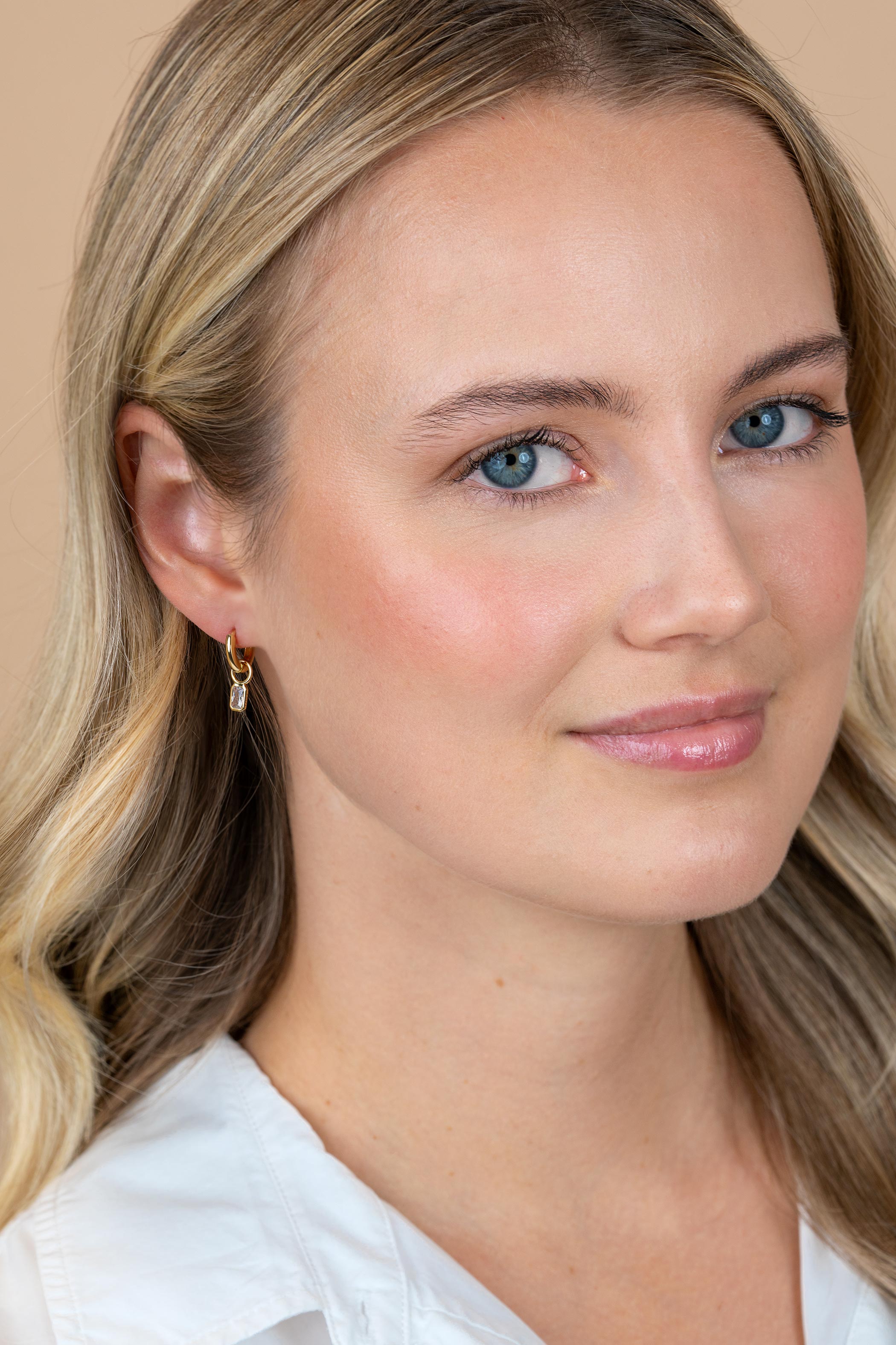 6mm ZINZI goldplated zilveren oorbedels met baguette-geslepen zirkonia in achthoekige zetting ZICH2826 (zonder oorringen)