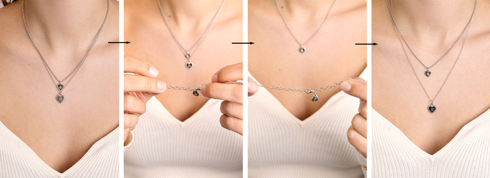 Er zijn een aantal stappen die je kan volgen om de perfecte combinatie van kettingen samen te stellen. Het gaat vooral om de verschillende lengtes van kettingen.