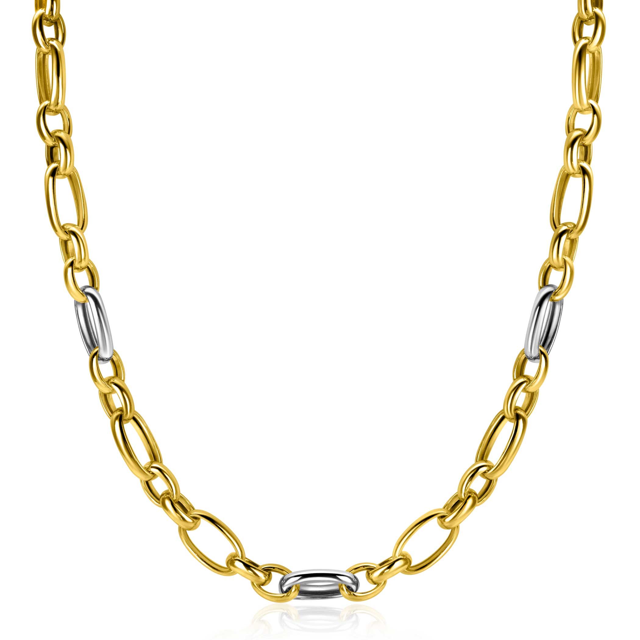 ZINZI bicolor schakelketting (7mm breed) met afwisselend gold plated jasseron schakels en grote zilveren ovale schakels 45cm ZIC2639