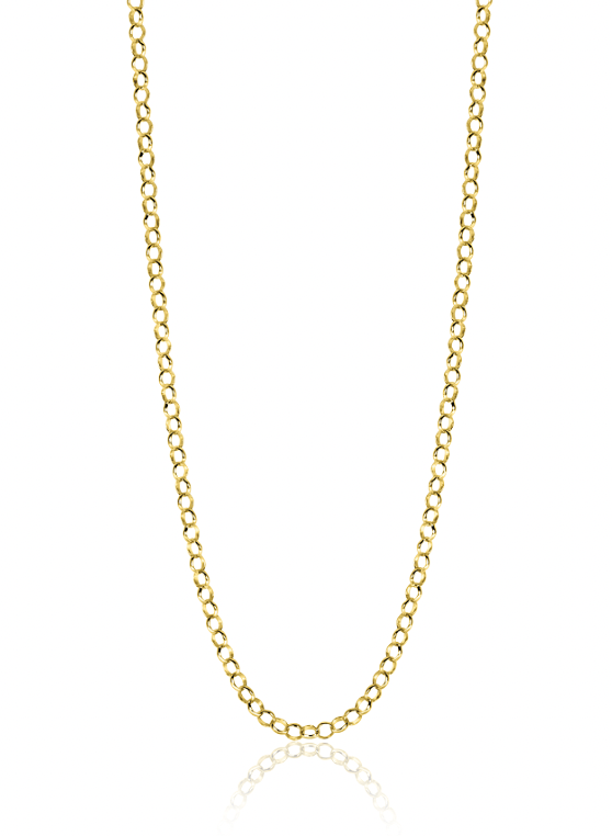 ZINZI Gold 14 krt gouden jasseron ketting met schakels van 2,2mm breed. De lengte is te variëren tussen 43 en 45cm door het verlengstukje. Met herkenbaar 'Zinzi' door het kleine gouden Zinzi hartje bij de sluiting. Vervaardigd van geheel 14 karaat goud (585).