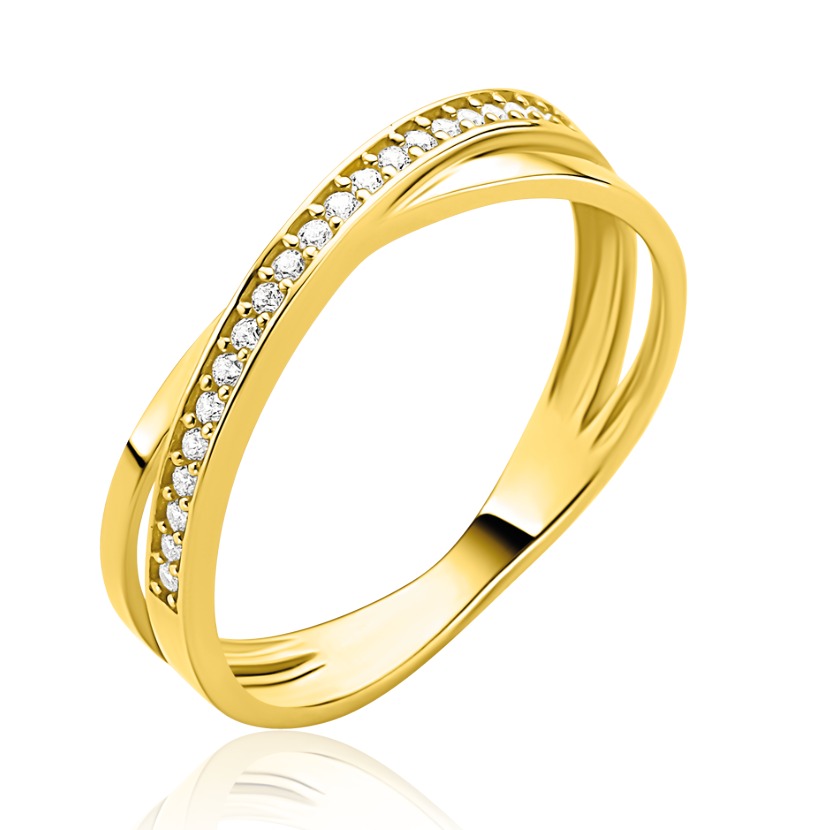 ZINZI Gold 14 krt gouden ring met cross-over design: glad en bezet met witte zirconia's ZGR469