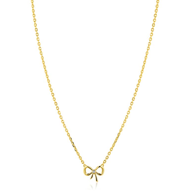 ZINZI gold plated zilveren ketting 42–45cm met sierlijke strik, bezet met witte zirkonia ZIC2724Y