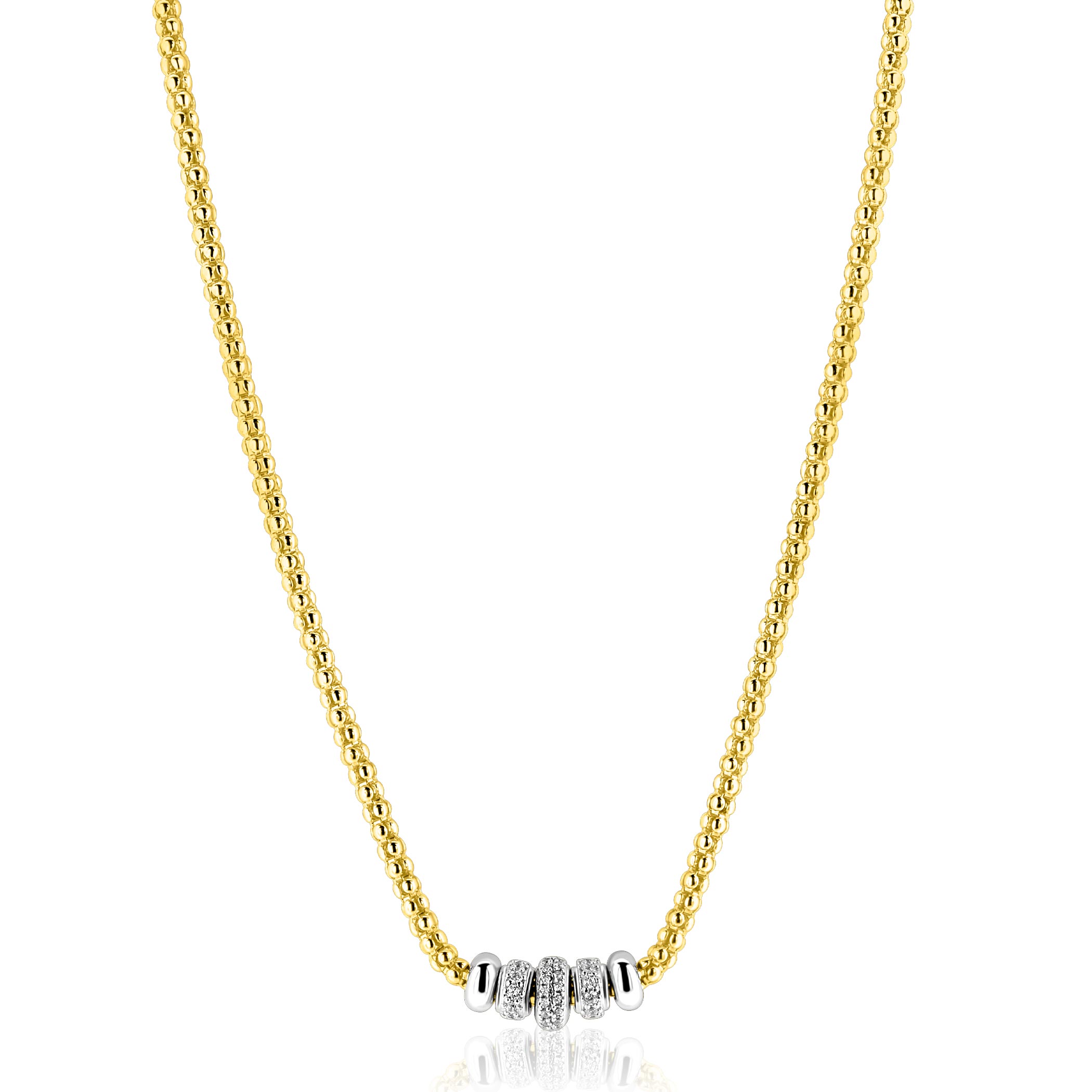 ZINZI goldplated zilveren popcorn schakelcollier 42-48cm met vijf sierlijke, beweegbare beads in zilver en wit zirkonia ZIC2779Y