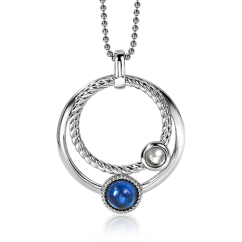 ZINZI zilveren hanger ronde cirkels blauw 32mm ZIH1963 (zonder collier)