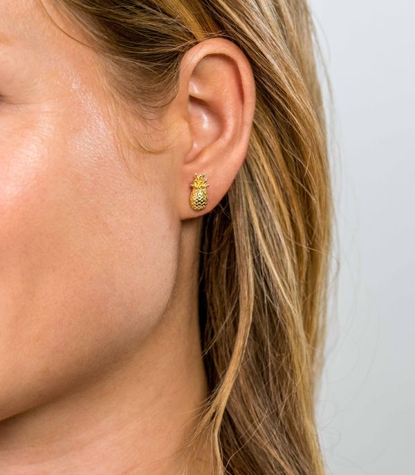 ZINZI zilveren oorknoppen geel verguld ananas ZIO1699G